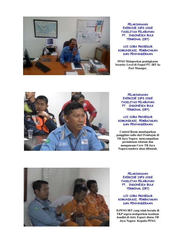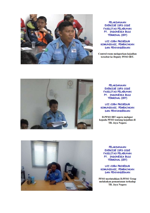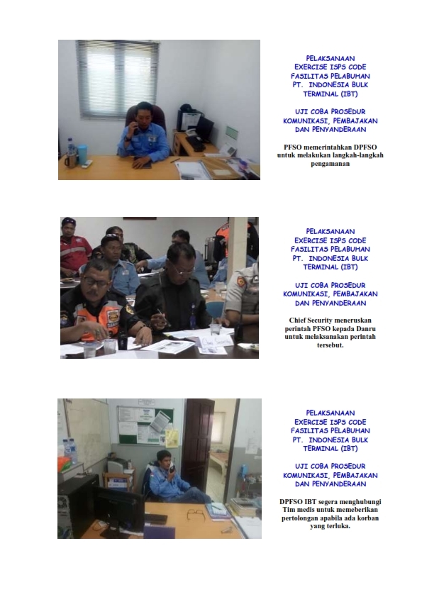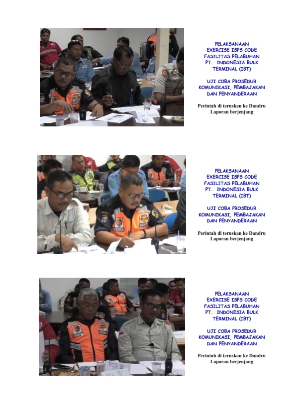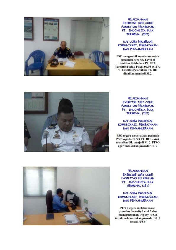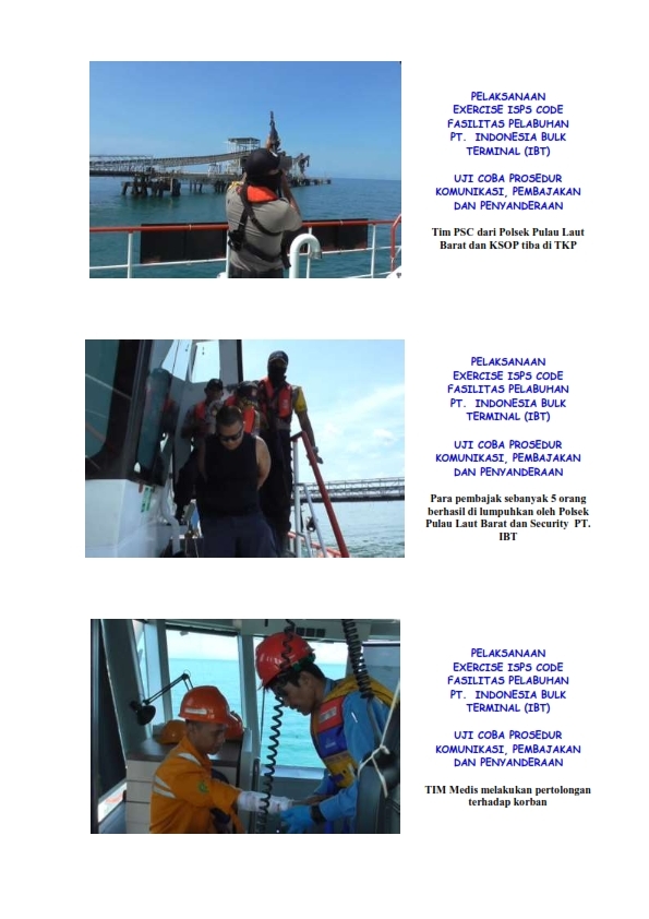 PELAKSANAAN EXERCISE ISPS CODE FASILITAS PELABUHAN PT. INDONESIA BULK TERMINAL (IBT)