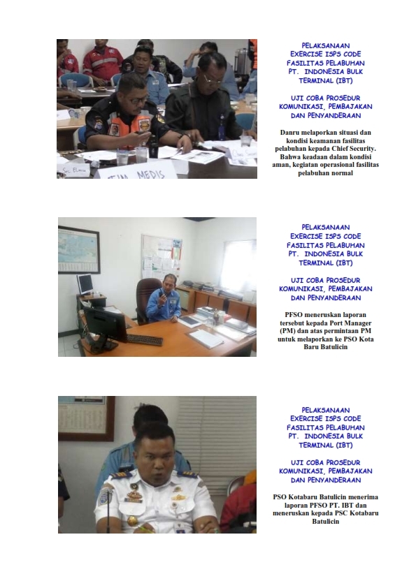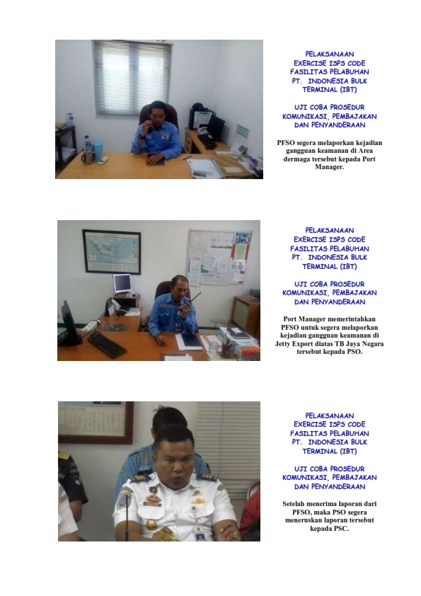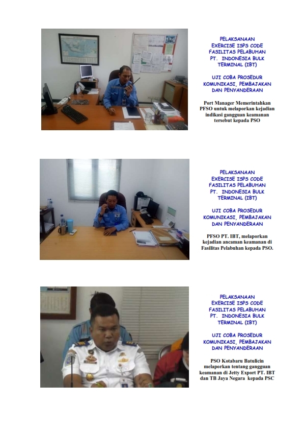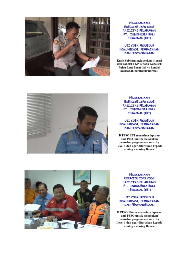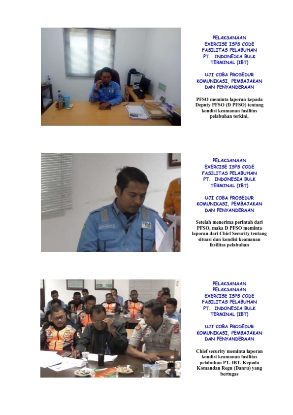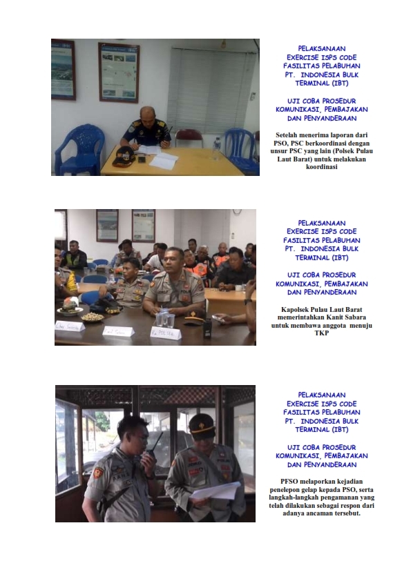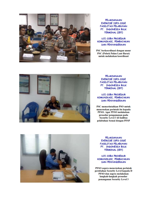 PELAKSANAAN EXERCISE ISPS CODE FASILITAS PELABUHAN PT. INDONESIA BULK TERMINAL (IBT)